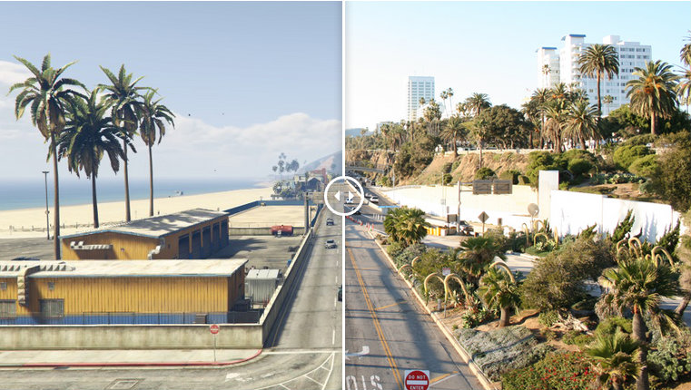 Cei de la Rockstar sunt renumiti pentru modul lor in care transpun locuri reale in jocurile lor, de aceea de foarte multe ori in randul fanilor intervine dorinta de a compara imaginile din jocurile GTA cu cele din realitate.
