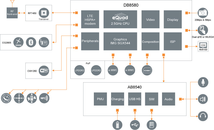 Procesorul este ajutat si de un GPU POWERVR SGX544 care ruleaza la 600Mhz. Tehnologia RAM suportata de procesor este LP-DDR2. Senzorul de imagine accepta o camera ce poate avea pana la 20MP, iar camera frontala de maxim 5MP. El mai dispune de Wi-Fi, Bluetooth, GNSS (GPS+GLONASS), FM si NFC. Ok, dar ce este Glonass? Toata lumea stie ce este GPS-ul, dar putini sunt cei care stiu ca exista si Glonass. Acesta din urma este utilizat in Rusia, fiind o alternativa la GPS.