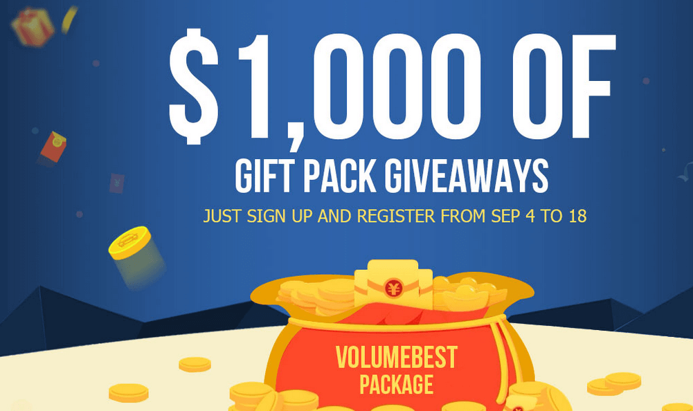 Pentru celebrarea deschiderii, VolumeBest ofera cadou pachete de 1.000 de dolari, mai exact, 100 de dolari pentru fiecare categorie pe care o au prezenta pe site, iar ca sa intrati in posesia lor este foarte usor. Tot ceea ce trebuie sa faceti este sa va inscrieti si sa completati formularul de informatii in perioada 4-18 septembrie.