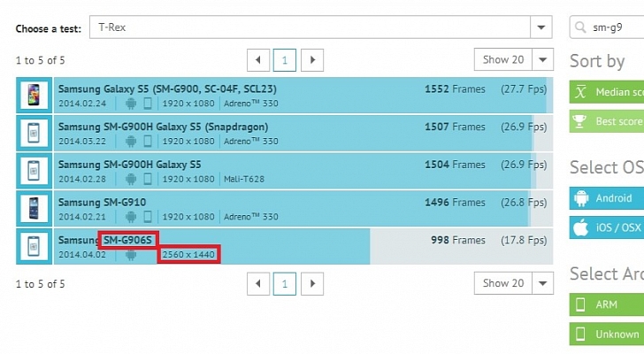 Samsung pregateste un terminal cu un ecran QHD adica un ecran cu o rezolutie de 2560×1440 pixeli ce va oferi o imagine foarte clara pe un terminal mobil. Diagonala display-ului va avea 5.2 inci, fata de doar 5.1 inci cat are un Galaxy S5. Am spus mai sus ca modelul ar putea sa se numeasca Galaxy S5 Plus. Numele de cod pentru Galaxy S5 este SM-G900 (cod general), iar versiunea koreana apare in trei variante Samsung SM-G900K/G900L/G900S. Ultima varianta este SM-G900S, iar viitorul model cu ecran QHD are numele de cod SM-G906S. Din acest motiv putem sa spunem ca denumirea terminalului ar putea fi Galaxy S5 Plus, un model superior pentru actualul flagship.