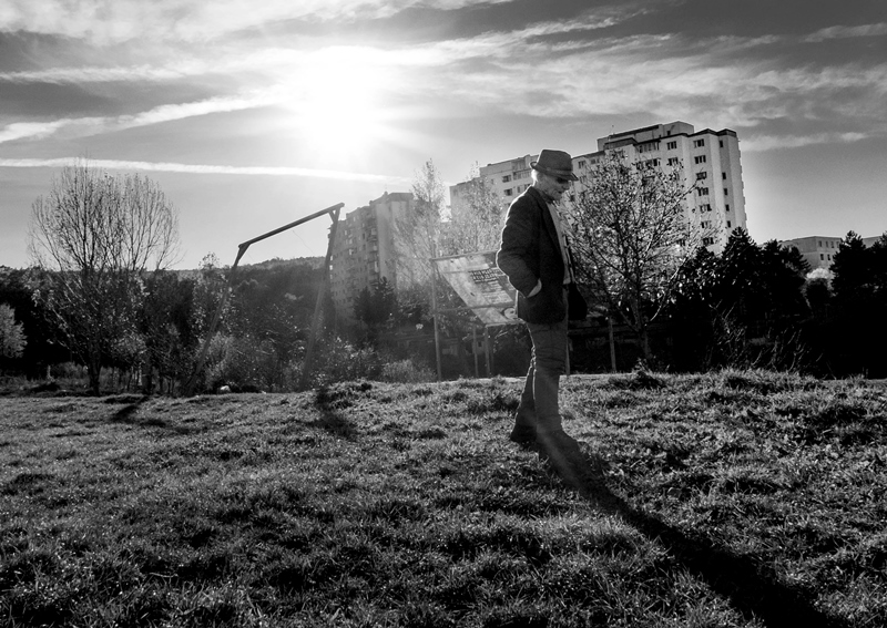 ”Fotografia a fost realizată în octombrie 2013, pe un câmp de la marginea orașului Cluj-Napoca. După câteva minute, l-am zărit pe acest bătrân și am vrut să surprind contrastul dintre el și ambientul sălbatic, mărginit în zare de blocurile din oraș. Ca de obicei, am văzut o conexiune între elementele componente ale imaginii, iar scopul meu era să o surprind”, spune Sebastian Văcăriuc despre fotografia sa.